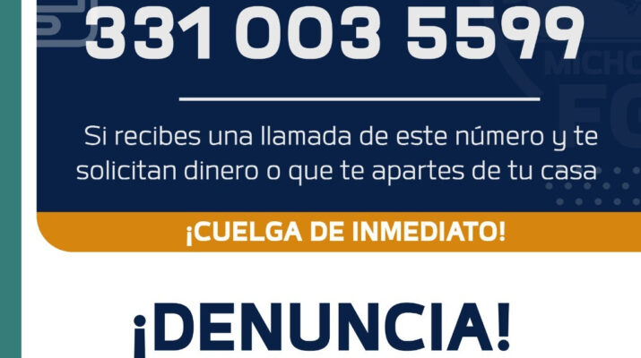 La FGE solicita a la población no atender este tipo de llamadas, y denunciarlas de forma inmediata ante la Fiscalía Regional más cercana, o bien, a la Unidad Especializada de Combate al Secuestro, ubicada en Periférico Independencia #5000, colonia Sentimientos de la Nación en Morelia, o comunicarse al teléfono 443 322 36 00 extensión 2234.
