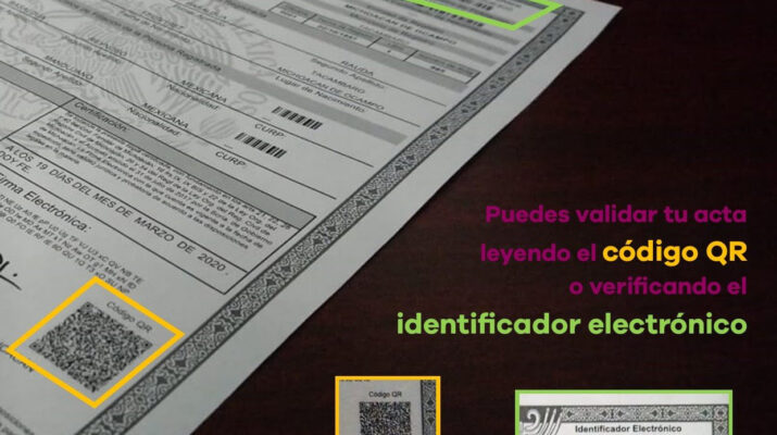 El acta tramitada vía internet se valida leyendo el código QR que se encuentra en la parte inferior izquierda o verificando su identificador electrónico en la página www.michoacan.gob.mx/actas, mismo link donde se solicita.