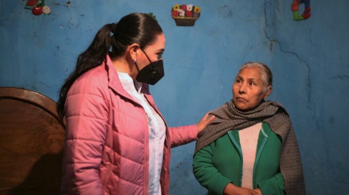 Campos con la señora María Soledad Espinoza González de El Platanal, en la que