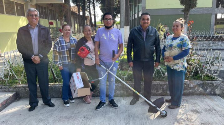 -Apoya con herramienta que será de gran utilidad para mantener en buen estado las áreas verdes de la secundaria.