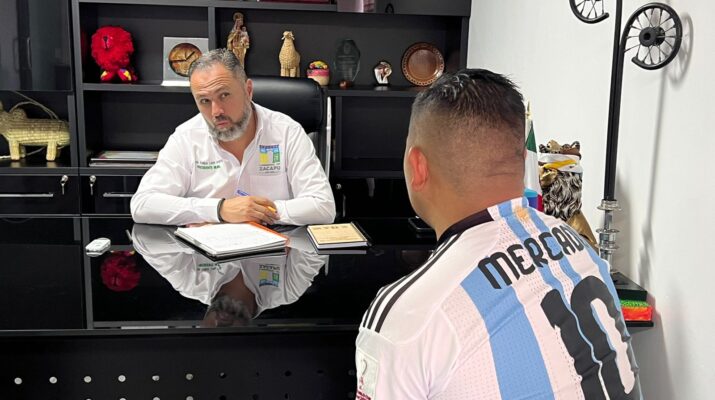 Al recibir al representante del equipo de fútbol, el presidente municipal demuestra su voluntad de escuchar las necesidades y solicitudes de la comunidad, en este caso, relacionadas con el deporte y la mejora de las instalaciones deportivas.