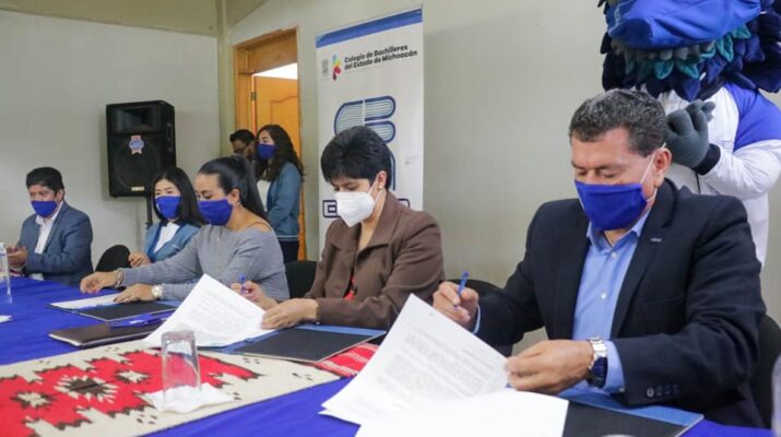 Quiroga, Michoacán (Digital 3.0).- La Alcaldesa de Quiroga, la Dra. Alma Rosa Vargas firmó un convenio de colaboración entre Colegio de Bachilleres, padres de familia y el H. Ayuntamiento para la conclusión de construcción de gradas y vestidores en el COBAEM Quiroga.