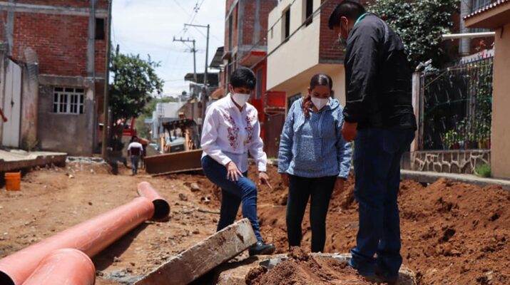 Se dio cita de visitar los trabajos que se realizan en calle Pino Suarez, que consta de una obra de construcción de drenaje sanitario, línea de agua, así como el concreto hidráulico.