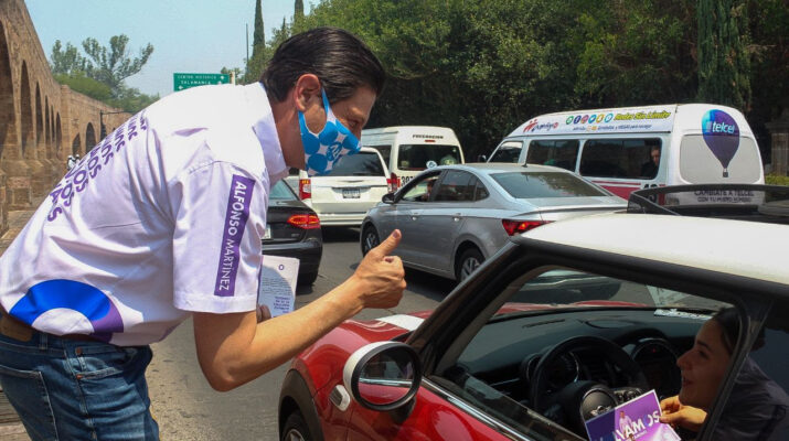 “Ayúdenme a volver para recuperar el buen camino en nuestra ciudad”, señaló Martínez Alcázar a las y los automovilistas que con gusto le saludaban chocando el puño, sin dejar de lado que provocó más de una sonrisa entre varias automovilistas, que le mostraron su apoyo.