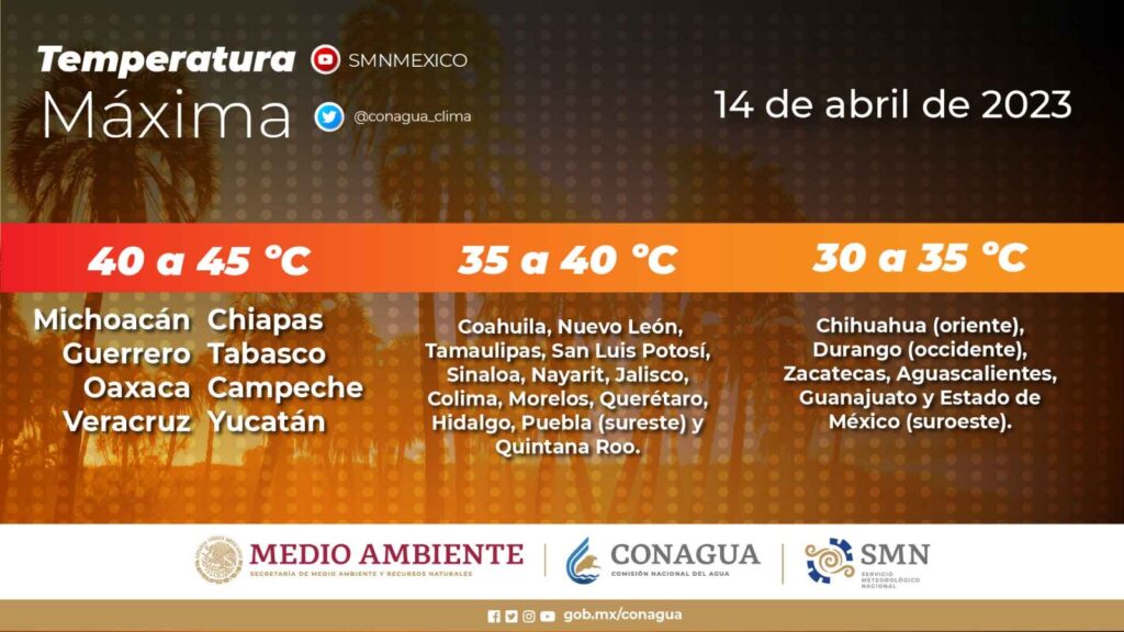 El Servicio Meteorológico pronostica temperaturas máximas de 40 a 45 grados en zonas de la Tierra Caliente y Costa de Michoacán, mientras que en el resto del estado, el termómetro superará los 30 grados Celsius.