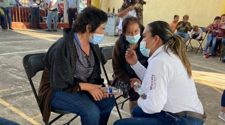 Marcela Velázquez estuvo presente este martes en la comunidad del Ojo de Agüita, acompañada de su planilla, habló sobre la importancia del campesino en Coeneo.