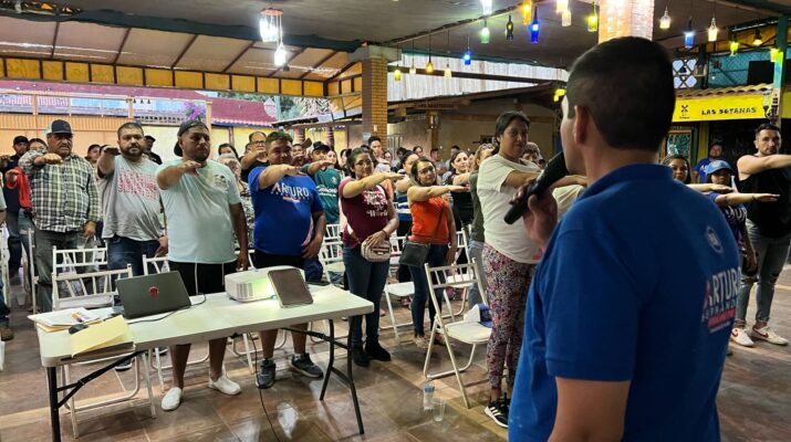 Durante la capacitación impartida a los ciudadanos que fungirán como representantes de casilla en esta contienda electoral, Arturo Hernández en compañía de los miembros de su planilla y los representantes generales firmaron el compromiso con cada uno de