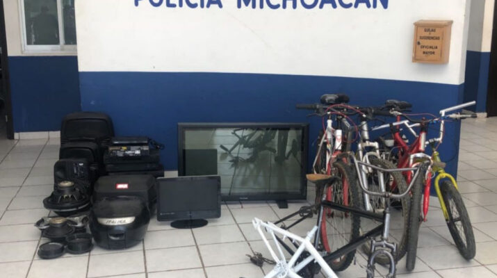 Derivado de lo anterior, en la calle Gregorio esquina con Venustiano Carranza, se logró la detención del segundo implicado, a quien le fueron asegurados diversos equipos de sonido, bicicletas, monitores, un radio de comunicación entre otros, siendo un total de 25 objetos presuntamente robados.