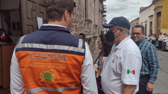 Morelia, Michoacán, 19 de septiembre del 2022.- El Gobierno de Michoacán mantiene una atención puntual en todo el territorio estatal, luego del sismo de intensidad de 7.4 con epicentro a 63 kilómetros al sur de Coalcomán, del que al momento solo se registran afectaciones materiales.