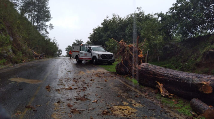 De igual manera en dichos municipios se han reportado la caída de árboles, mismos que han sido retirados por las corporaciones de auxilio en trabajo conjunto con las fuerzas de seguridad estatales y federales.