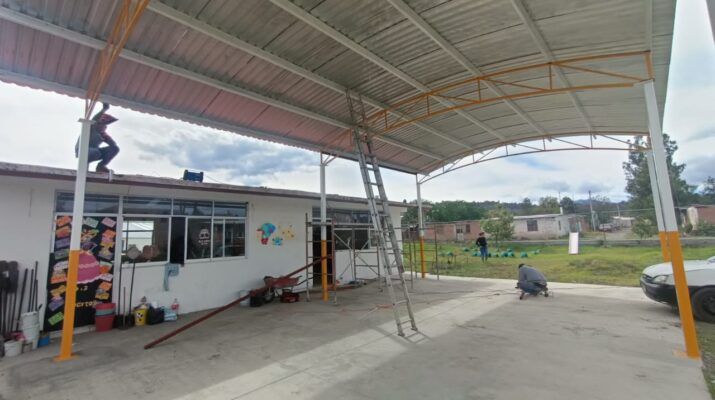 Actualmente, se encuentran en proceso de colocación de las últimas vigas, así como en el término de la instalación de láminas que conformara la techumbre.Se estima que la techumbre estará completamente terminada antes de iniciar las vacaciones decembrinas, lo que permitirá al alumnado y al personal docente disfrutar de este valioso recurso, al regreso a clases.Una vez finalizada la obra, esta estructura proporcionará un espacio cubierto que protegerá de las inclemencias del tiempo y facilitará la realización de eventos y actividades al aire libre, tanto académicas como recreativas.