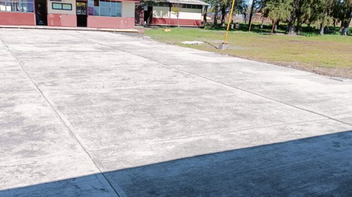 La dirección de Obras públicas informa un avance general de la obra del 30% en la construcción de techumbre de estructura metálica, la cual servirá a los alumnos para que realicen sus prácticas deportivas y actos cívicos.