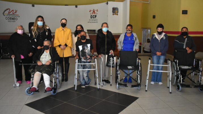 Coeneo, Mich, (Digital 3.0).-La presidenta Municipal de Coeneo, Marcela Velázquez Vázquez, acompañada de la presidenta del SDIF de Coeneo, Valeria Aguilar y de la directora Angelica Hurtado Arteaga, refrendaron su compromiso para brindar atención integral a personas que más lo necesiten, a través de la entrega de paquetes de aparatos (sillas de ruedas, bastones de apoyo y andaderas).