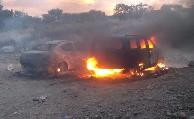 Cuando llegaron los uniformados sólo encontraron un carro marca Nissan tipo Versa y otra unidad Jeep completamente incendiadas.