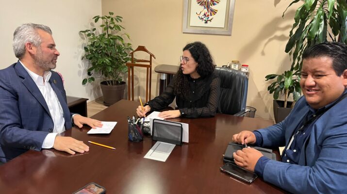 Ciudad de México, 5 de octubre del 2022.- El gobernador Alfredo Ramírez Bedolla revisó con la secretaria del Trabajo y Previsión Social, Luisa María Alcalde, especificaciones de la propuesta regulatoria para la contratación y formalización de trabajadores agrícolas del aguacate en Michoacán.