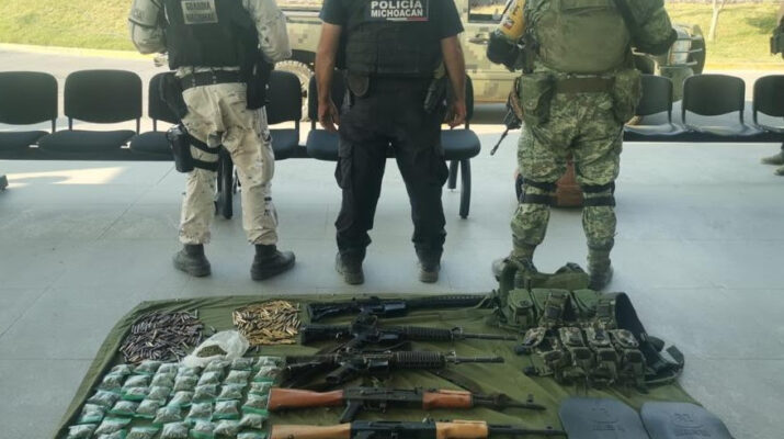 Tangancícuaro, (Digital 3.0).- Resultado de labores efectuadas por personal de la secretarías de Seguridad Pública (SSP), de la Defensa Nacional (SEDENA), y de la Guardia Nacional (GN), se realizó el aseguramiento de una persona del sexo masculino, 5 armas de fuego, 6 vehículos relacionados en actividades ilícitas, 344 cartuchos útiles de distintos calibres y 68 envoltorios con hierba seca, al parecer marihuana.