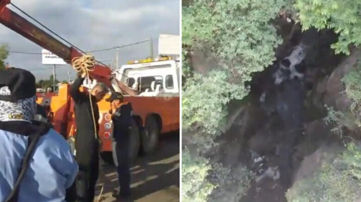 Personal de bomberos llego al lugar y con la ayuda de una grúa, descendieron al fondo del barranco de casi 80 metros de profundidad, en la comunidad de