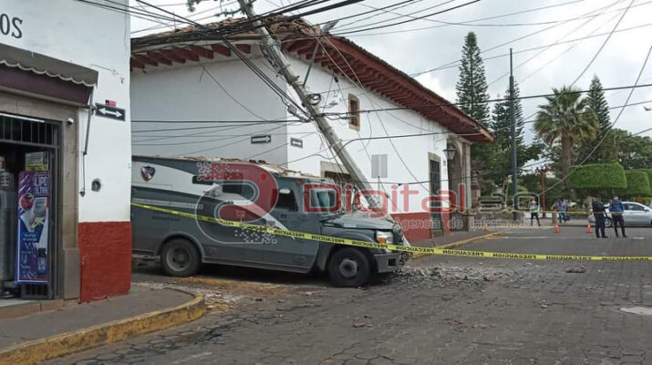 Morelia, Mich.-(Digital 3.0/Red 113).-Un camión de valores que se salió de control en el Centro de Tacámbaro, derribó un poste de concreto para cableado de la Comisión Federal de Electricidad (CFE)