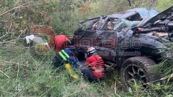 A su llegada los rescatistas descendieron a rapel por el terreno agreste hasta que localizaron una camioneta Toyota Tacoma de color negro totalmente destrozada, observando al interior el cuerpo sin vida y prensado de su conductor.