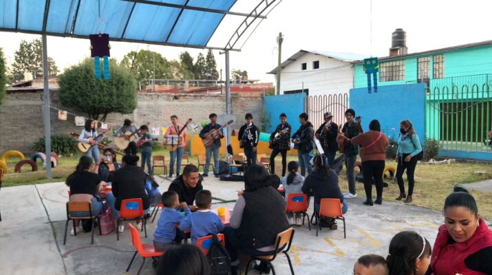 El taller de guitarra de Casa de la Cultura “Tata Agustín García Alcaraz”, recibió la invitación para participar amenizando en este significativo evento, en el cual interpretaron canciones mexicanas del dominio público y gusto de los asistentes, en el cual los niños apreciaron y participaron de esta expresión musical.