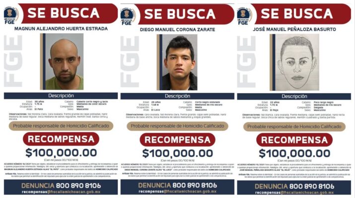 Ofrece FGE recompensa para detención de presuntos responsables de hechos ocurridos en el Bar, en Morelia