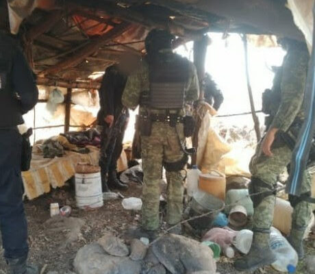 Tangancícuaro, Michoacán (Digital 3.0).- Personal de las Secretarías de Seguridad Pública (SSP), y de la Defensa Nacional (SEDENA), ubicó y destruyó un campamento en el