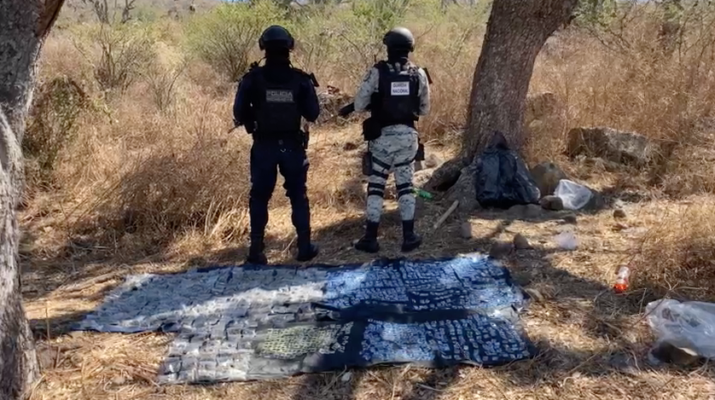 SSP y GN aseguran más de mil 300 dosis de droga en un campamento utilizado por una célula delictiva