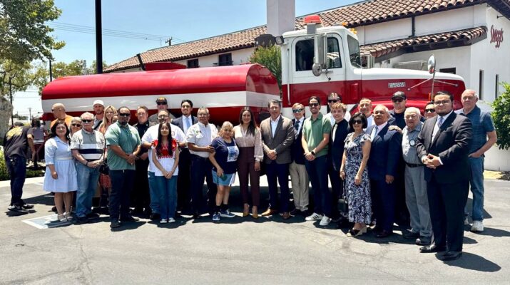 Recibe Mónica Valdez camión de bomberos gestionado en coordinación por migrantes y el Club Rotario de Fontana, California.