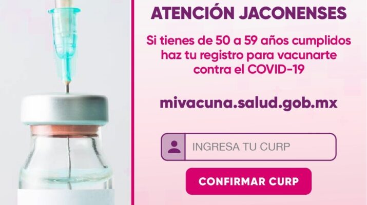 Jaconenses de entre 50 a 59 años ya pueden registrarse para vacuna anticovid