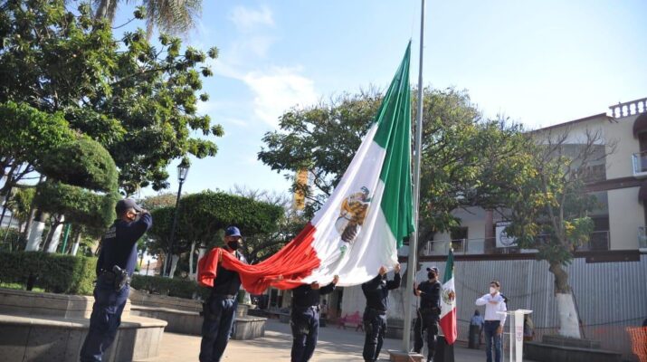 Jacona, Mich. (Digital 3.0).- Autoridades municipales celebraron el Día de la Bandera, con significativo acto cívico que se realizó en la plaza principal, para