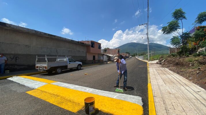 Jacona, Mich. A punto de ser conlcuida la pavimentación asfáltica de la calle Lázaro Cárdenas en la colonia del mismo nombre, el Gobierno Municipal
