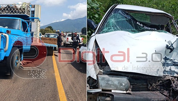 Hombre muere al impactar su auto contra camión de carga en Tangancícuaro