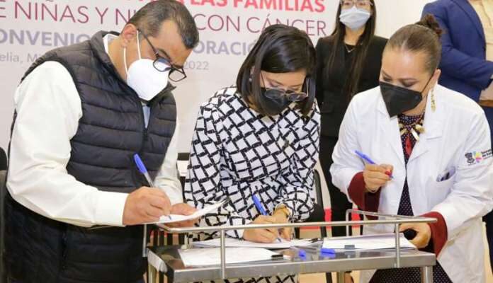 La Secretaría de Bienestar y autoridades de Salud signaron convenio a favor de los tutores de niñas y niños con cáncer Morelia, Michoacán, (Digital
