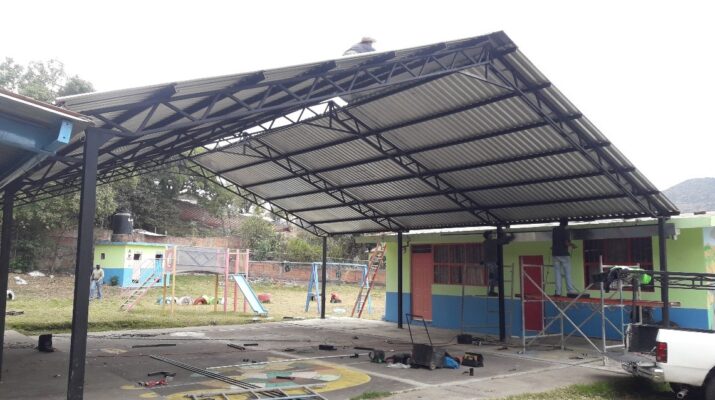 Avanza construcción de techado en J/N Margarita Maza de Juárez, en La Luz, Panindícuaro
