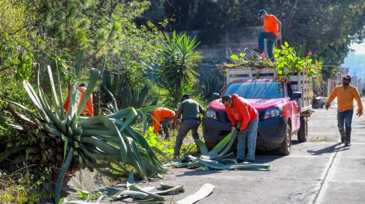 Gobierno de Quiroga realiza limpieza de la canaleta en la calle Benito Juárez.