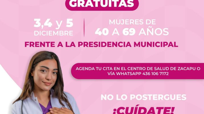 Se realizarán mastografías gratuitas los días 3, 4 y 5 de diciembre. La detección oportuna del cáncer de mama puede salvar vidas con un