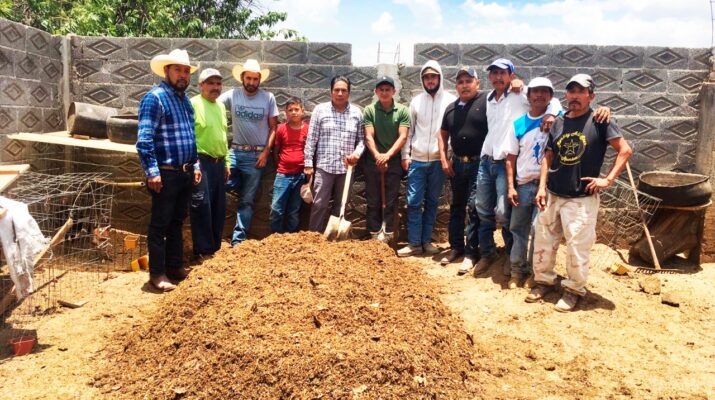 Seis campesinos del rancho la Tirimicua de la comunidad del Calvario, elaboraron este lunes 500 kilos de composta para cubrir media hectárea de tierra