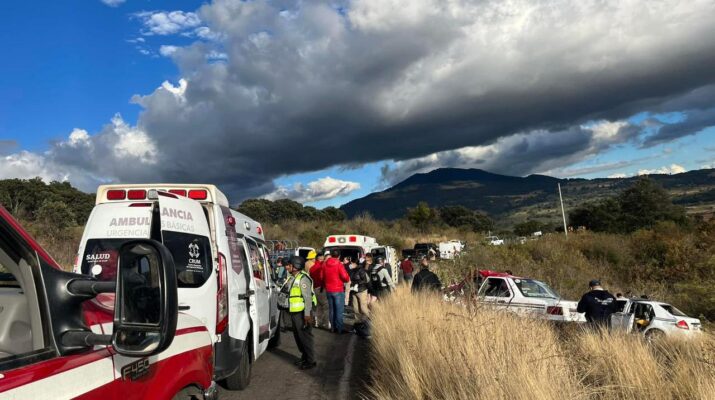Choque entre camioneta y 2 taxis en la Morelia-Quiroga deja 5 lesionados