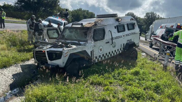Se accidenta vehículo blindado de la GN en la Autopista en Panindícuaro; hay 5 heridos
