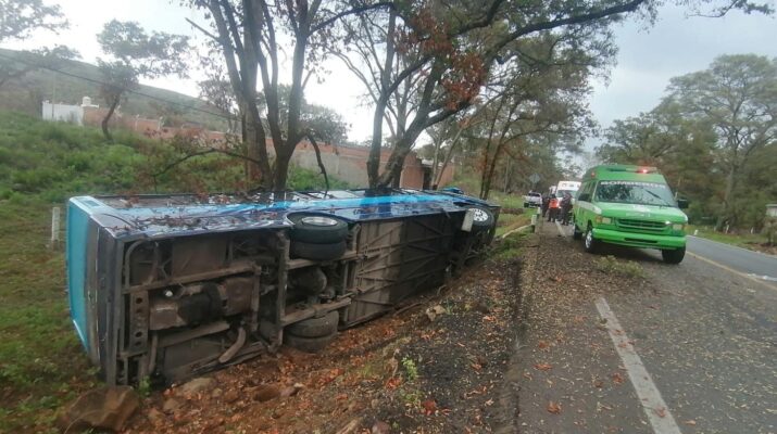 Volcadura de autobús de trabajadores deja 7 lesionados en Zacapu