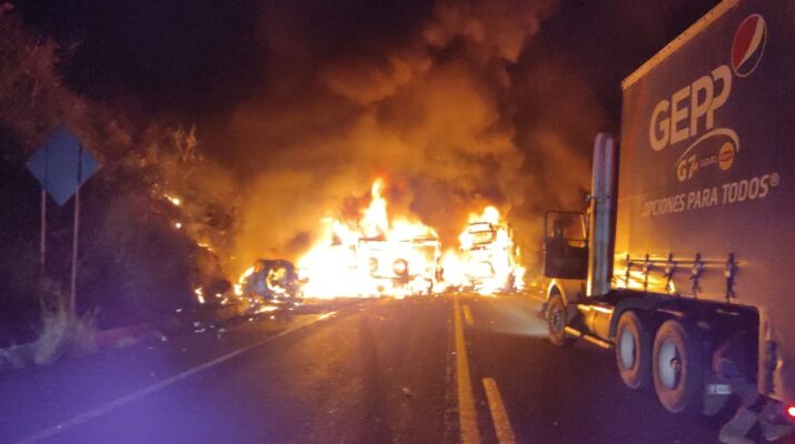 Chocan dos camiones «nodriza» y un auto, se incendian; hay un muerto y un herido