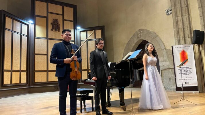 Así lo expuso la presidenta de esta Comisión la diputada Andrea Villanueva Cano, quien celebró la exitosa participación del ensamble realizado por Frida García, Bernardo Ramírez y Farid Nava, estudiantes del Conservatorio de las Rosas y quienes gracias al respaldo de las legisladoras, participaron en el II Festival Internacional Tomás Luis de Victoria en la ciudad de Ávila, España.