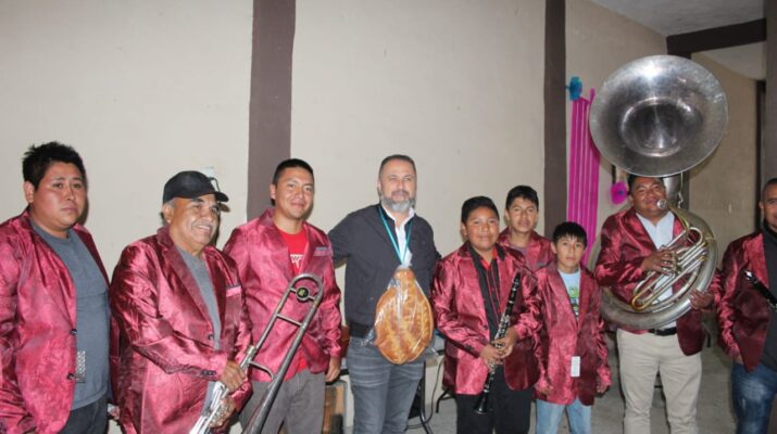 Respondiendo a la solicitud de los talentosos músicos de esta destacada organización musical, el presidente municipal entregó sacos que forman parte de la indumentaria de la banda «La Flor del Rio» de la comunidad de Tarejero. Este gesto tiene como propósito motivar a los músicos a continuar con sus estudios y proporcionarles las herramientas necesarias para seguir aprendiendo y tocando música. La banda, compuesta por jóvenes estudiantes, recibió con gratitud los sacos entregados. Durante el evento, el alcalde León Balbanera fue recibido con música tradicional alegre interpretada por la banda y el cálido aplauso de los habitantes de la comunidad.