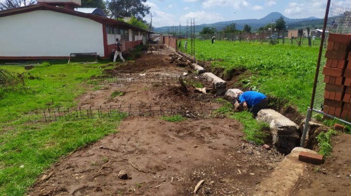 Zacapu, Mich., 18 de julio 2022.- Con un avance del 55% la construcción del muro perimetral en la Escuela Secundaria Técnica 109 de la comunidad de Naranja.