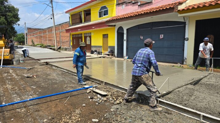 La pavimentación con concreto hidráulico de la calle Santa Fe presenta actualmente un sesenta por ciento de avance.