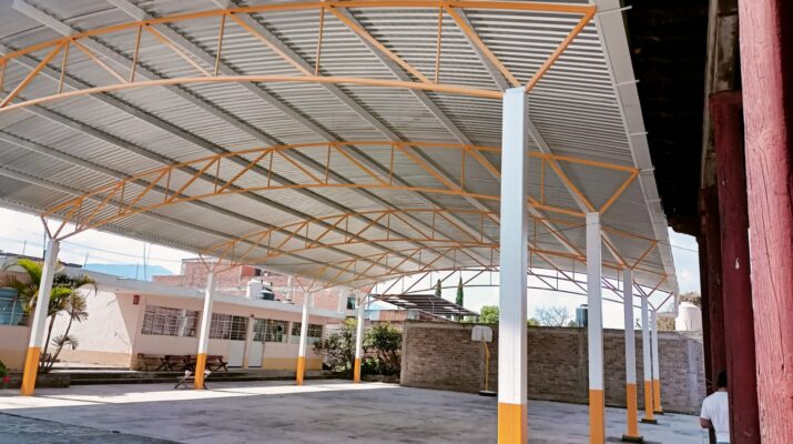 La construcción se realizó a través de la Dirección de Obras Públicas, a cargo de Alma Sosa Juárez, la cual informo que está terminada al 100% terminó la techumbre metálica en el área de la cancha de usos múltiples.
