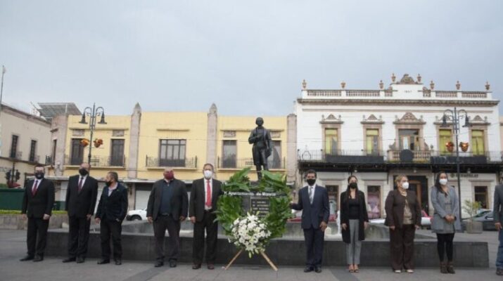 Morelia, Michoacán (Digital 3.0).- Con motivo del CLX aniversario luctuoso de Don Melchor Ocampo, el presidente municipal, Humberto Arróniz Reyes, encabezó el izamiento de bandera y depósito de la ofrenda floral en la Plaza Melchor Ocampo, en donde se rindieron los honores correspondientes.