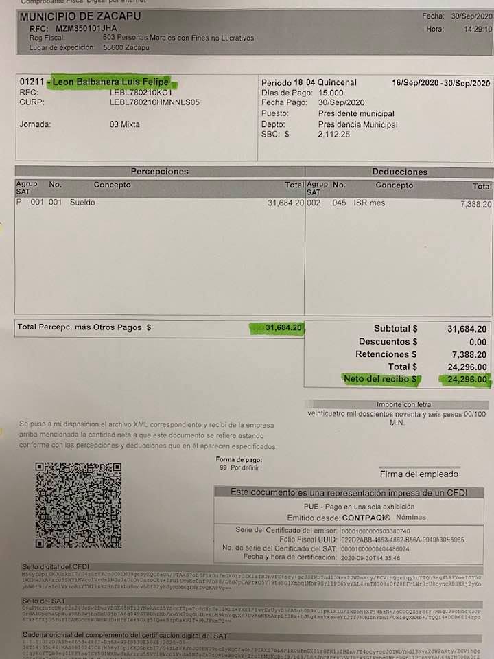 Zacapu Mich. (Digital 3.0).- Luis Felipe León Balbanera dio a conocer de forma pública su recibo de Nómina, esto tras una serie de acusaciones políticas y mala información manejada hacia los ciudadanos.