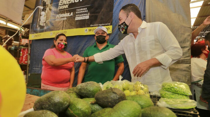 El abanderado del PRI, PAN y PRD realizó un recorrido por el mercado López Rayón para escuchar el sentir de los comerciantes, quienes externaron las dificultades que cuesta levantarse en medio de la epidemia por COVID-19.