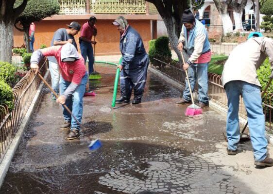 Zacapu Mich., 05 de Abril del 2023.- Con el compromiso de mantener una ciudad limpia y ordenada, El Gobierno Municipal que preside Luis Felipe León Balbanera, a través de las Direcciones de Limpia y Residuos Sólidos, a cargo de Odont. Agustín García, así como Ing. René Reyes Cervantes, Director de Espacios Públicos, Parques y Jardines, llevaron a cabo labores de limpieza en Plaza Reforma de Zacapu.